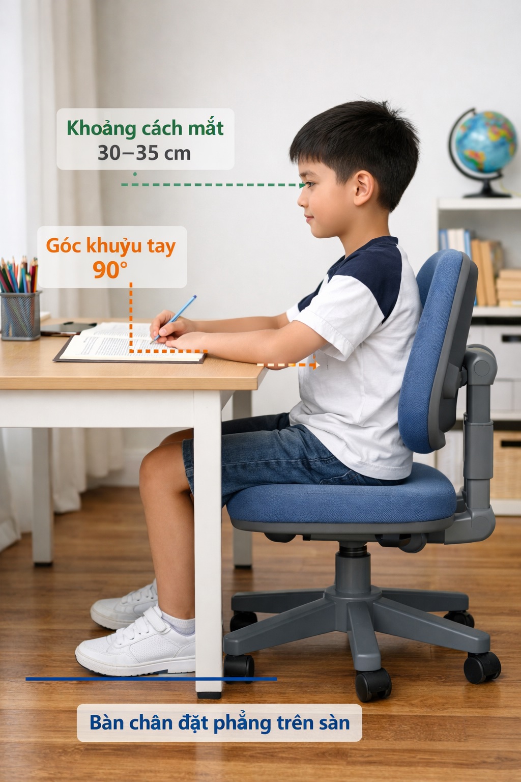 Điều này đặc biệt hữu ích với trẻ có thói quen nghiêng đầu hoặc gù lưng khi học.